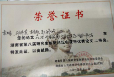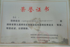 (5)衡阳市科学技术进步奖三等奖,二烯丙基二硫抗人急性髓细胞白血病的系列研究,2014KJ28-2,易岚排名第二。
