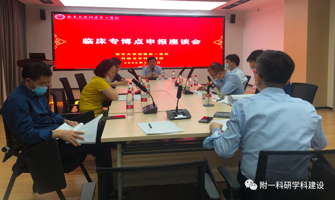 5月6日上午,为进一步推进衡阳医学院临床专博点申报工作,明确下一阶段工作思路,衡阳医学院在南华大学附属第一医院综合楼4楼学术报告厅组织召开临床专博点申报座谈会。南华大学附属长沙中心医院院长冯永教授、南华大学附属第一医院主管科研与学科建设副院长谭钢教授、衡阳医学院人才培养办副主任兼南华大学研究生院副院长张弛副教授出席会议,拟申报博士点学科的负责人及其骨干成员参加会议,此次会议由临床专博点申报带头人冯永院长亲自主持,由南华大学附属第一医院科研与学科建设部负责组织。