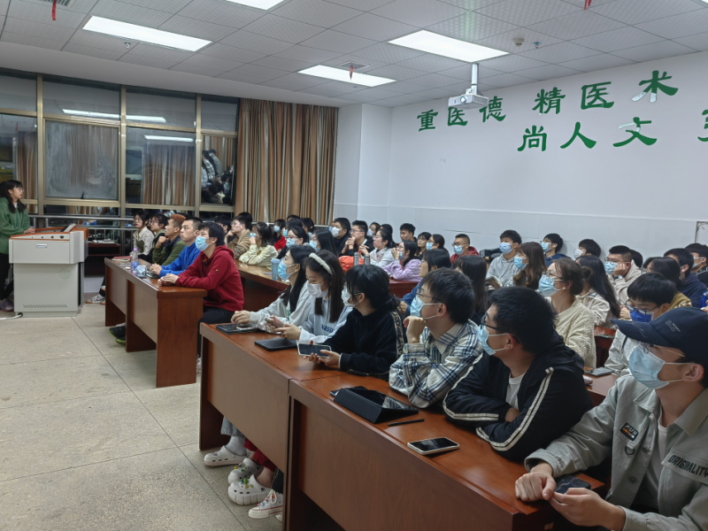 接下来,主讲人依次上台进行经验分享。罗湘林同学就保研推免的资格、保研前期工作的准备、实习医院的选择等相关内容进行了介绍;陈雯同学详细介绍了临床技能竞赛的相关情况及参加技能竞赛的感受进行分享,她强调临床技能训练的重要性,不管是保研、考研,还是以后的临床工作,参加临床技能竞赛将受益终生;谭萱同学就自己的保研经验和感受进行分享:谭萱认为:大家目光一定放长远,早设立目标,早打算;强调的英语重要性,努力提高专业英语以及口语能力;张海亚同学就医院及专业的选择、预推免及夏令营准备等相关内容进行了详细介绍,并分享了个人材料的制作、相关专业学习的参考书目与自己参加夏令营面试时的心得,为同学们提供了丰富的经验借鉴。