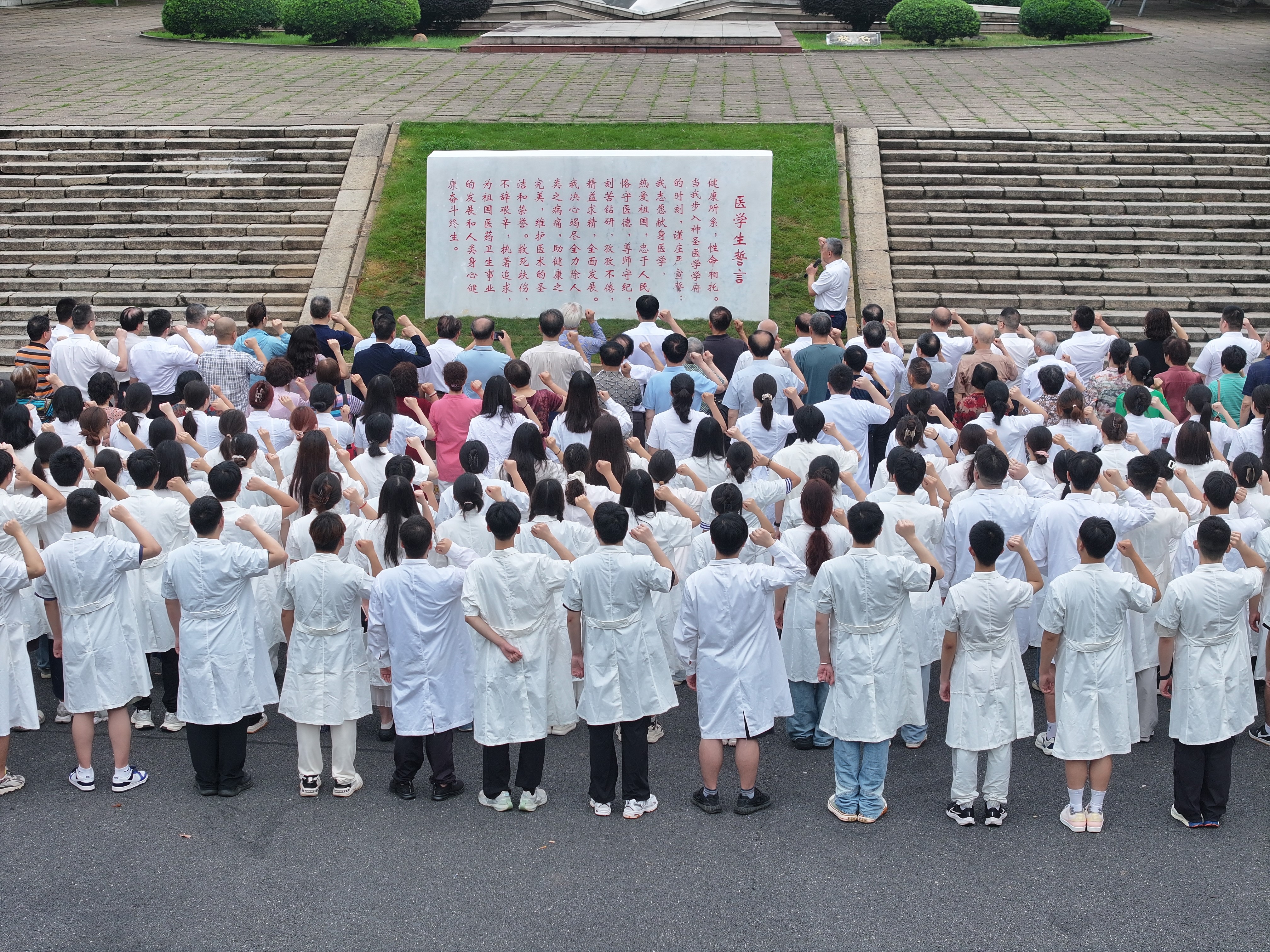 校友和毕业生代表纷纷表示,要以碑为镜,永葆赤子初心,坚守医者誓言。牢记在誓言碑前举拳宣誓的热忱与庄严,铭记“除人类之病痛”的崇高誓言;要以碑为桥,凝聚衡医力量,共铸健康长城。鼎力相助、薪火相传,让“衡医共同体”成为护佑人民健康的坚不可摧的钢铁长城!要以碑为炬,勇攀医学高峰,融合创新人文。在医学前沿领域实现更多突破,以深厚的仁心与精湛的仁术温暖时代,传递医学的温度与力量,让这座矗立于放飞广场的丰碑,永远闪耀为中国医学事业奋进的南华星光,照耀我们衡医人一路前行!