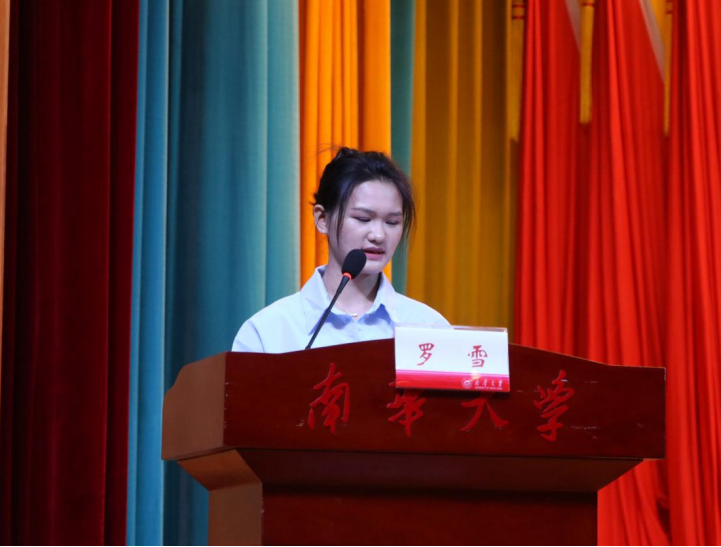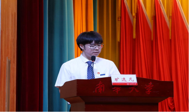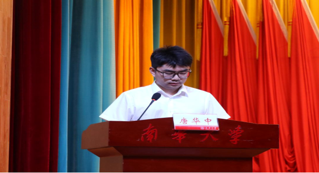会议议程第五项,在校生代表第二临床学院2023级硕士研究生旷逸凡、南华临床学院2022级硕士研究生唐华中同学发言。他们殷殷叮嘱新生们:尽快适应身份的转变,合理规划时间,平衡好临床轮转、课程学习和科研工作;掌握人际交往的主动性,善于向老师、同学、社会学习;要培养坚韧不拔的意志,勇敢面对学习和临床中的困难与挑战,在不断的磨砺中成长为一名优秀的临床医师和研究者。