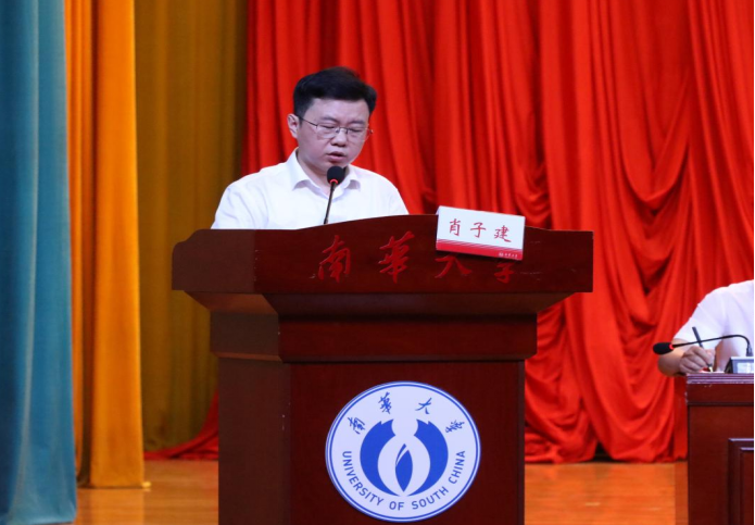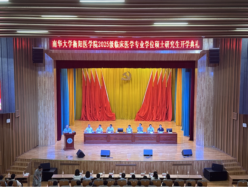 6月30日上午,南华大学衡阳医学院2025级临床医学专业学位硕士研究生开学典礼于南华礼堂隆重举行。本次开学典礼由衡阳医学院党委副书记卢清华老师主持,南华大学党委研究生工作部部长马军老师、衡阳医学院党委书记曾国老师、衡阳医学院常务副院长屈顺林老师、衡阳医学院副院长曾希老师、南华临床学院副院长袁梅老师、长沙中心医院临床学院副院长赵飞骏老师,导师代表、第一临床学院神经内科主任肖子健老师,以及衡阳医学院、各直属医院分管研究生培养、思政工作的老师们,2025级临床医学硕士专业学位研究生和在校研究生代表参加典礼。