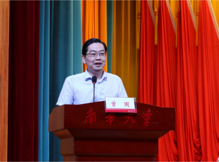 会议议程第七项,衡阳医学院党委书记曾国作总结讲话。曾国老师以三个“关键词”:唯一、创新、拼搏,从三个维度告诉同学们应如何度过三年研究生学习生涯,他特别向大家介绍了99级优秀校友舒易来教授的励志成才故事,激励广大新生:成长是在每一天凌晨走出实验室的星空里,成才是每一天第一束曙光里走进实验室的脚印里,高光是每一次厚积薄发后的创新里,希望全体新生以我们优秀的校友为榜样,汲取奋斗的力量,不负青春,不负韶华,以我们今日之努力,成未来之可期。