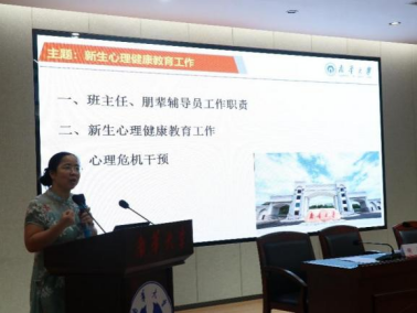 会议第二阶段,由基础医学院心理专干周君仪老师开展专题心理培训,进一步提升新生班主任、朋辈辅导员和下班党员的心理危机识别与干预能力。确保面对心理问题时“看得到、问得出、接得住、转得动”,让全体学员在学习中完成从“旁观者”到“守门员”的角色切换,守护每个新生的身心健康。