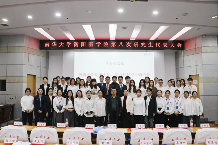 2025年11月7日,南华大学衡阳医学院第八次研究生代表大会在图书馆一楼学术报告厅隆重召开。大会全面总结第七届研究生团总支、研究生会各项工作成效,选举产生新一届团学会干部,明确未来“服务双一流建设、强化科研创新,深化校院联动”的发展方向。衡阳医学院党委书记曾国、衡阳医学院副院长唐小卿、党委副书记卢清华等领导、校团委研会代表、各直属医院单位团总支研会代表及我院214名研究生代表出席会议,共同为学院研究生工作擘画新蓝图。