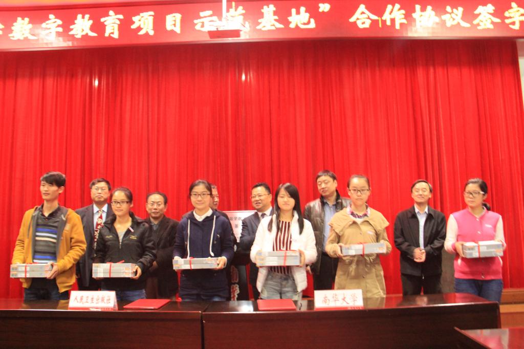 首先,由我校校长文格波致欢迎词,并对我校的基本概况进行了解说,大家听着入了迷,感到无比的骄傲与自豪。“今天我以南华为荣,明天南华以我为荣。”同学们都立志再续辉煌,为学校争光。接着,杜贤总编对我校的发展给予了高度评价并为我们介绍了人民卫生出版社的基本情况以及出版社数字教育项目示范基地建设的意义和目标,同学们听着都很羡慕和向往。最后,双方进行了签约揭牌仪式,并向我们全科班每个同学赠送了一台tpad。拿着tpad我们都有说不尽的感谢与欢喜,与此同时我们也感受到了肩上的责任:全科学子一定顺应新时代的要求,走在数字化教育的前沿。