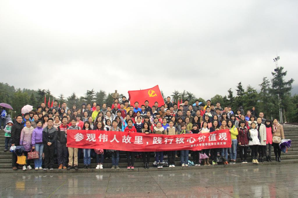 湖南素来被人们称为“革命摇篮、领袖故里”,在全国上下践行社会主义核心价值观之际,11月30日,南华大学医学院党委刘小平副书记、何战胜副书记携医学院18名教职工,带领着2012级、2013级、2014级共100名党员干部,前往韶山伟人故里瞻仰参观,开展红色之旅。各年级党支部在前往韶山的大巴车上举行了“学党史、知党情、跟党走”的知识抢答活动,进一步加强了全体党员干部的党性修养和理论水平。