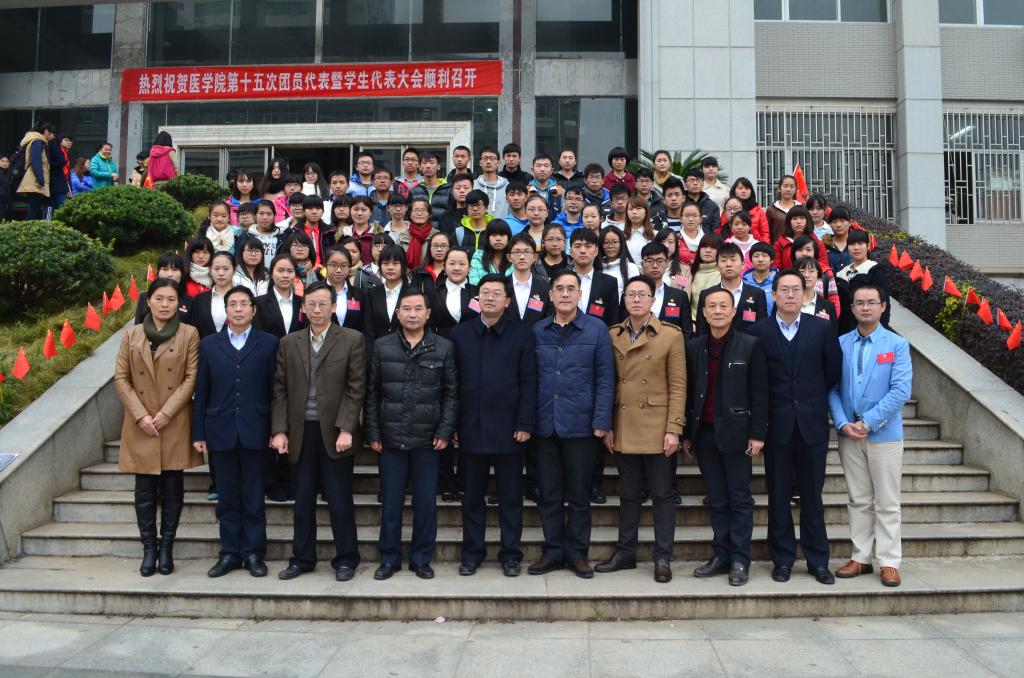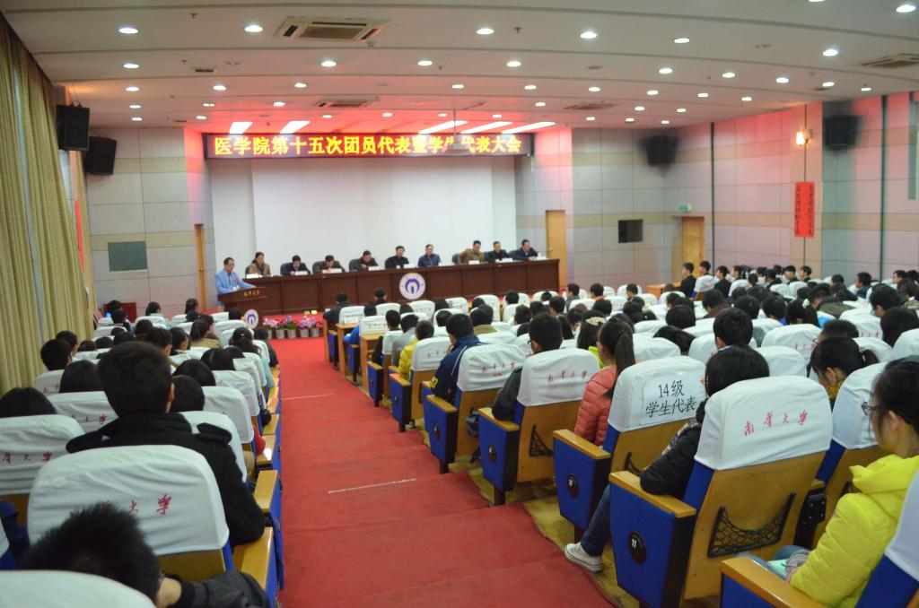 12月14日上午,南华大学医学院第十五次团员代表暨学生代表大会在图书馆报告厅隆重举行。莅临大会的领导有校学工部部长陈熙老师、校团委副书记李海洋老师、医学院院长田英老师、院党委书记贺修胜老师、副院长甘润良老师、院党委副书记刘小平老师、副院长桂庆军老师、副院长万炜老师、院党委副书记何战胜老师,莅临大会的嘉宾有医学院全体辅导员老师、校学生会、校研究生会以及各兄弟学院团学组织代表。医学院团委学生会全体成员以及225名各年级团学代表参加了本次会议。会议由院党委副书记何战胜老师主持。