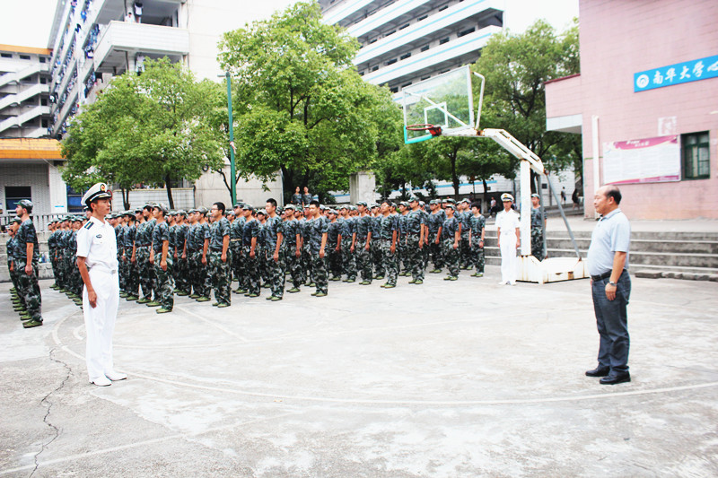 9月11日下午,刘升学副校长在南华大学2015级新生军训师师长姚征、军训师政委陈熙、军训师一团团长兼政委黄建美、医学院党委副书记何战胜的陪同下,亲临医学院2015级新生军训现场检查指导。