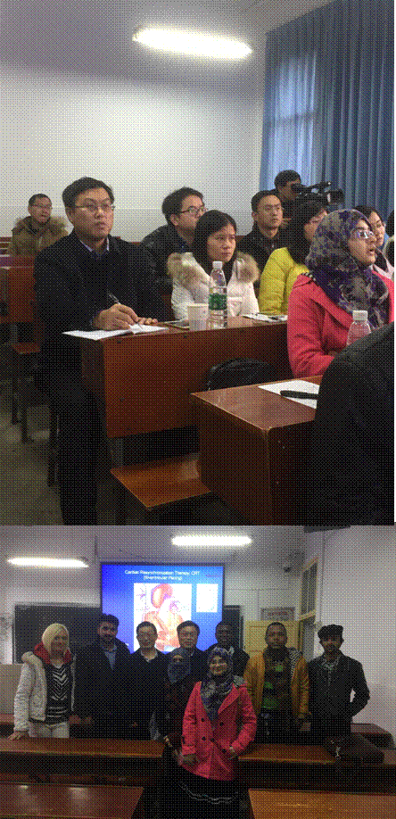12月14日下午2:30,我校心血管疾病研究所聘请的湖南省“海外名师”、加拿大西安大略大学终身教授冯清平教授来我校给留学生作了题为“Heart failure:pathophysiology and pharmacological treatment”示范性英语教学。