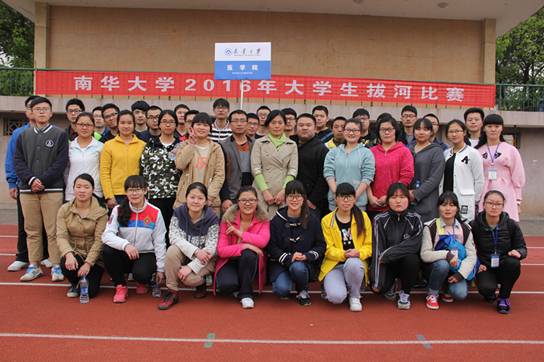 在下午决赛中,赛场上选手们手挽手,肩并肩,脸上闪动着坚定的神情。在老师和同学们呐喊助威声中,我院男女选手们在各自赛场上斗志昂扬,喊着“一二,一二”的口号,铆足力气一场场拼搏到底!赛场上欢呼声、呐喊声此起彼伏,处处洋溢着青春的气息,将此次比赛一次次推向了高潮。最终,医学院女队以绝对优势战胜化学化工学院和机械工程学院,勇夺2016年南华大学大学生拔河比赛女子比赛冠军;男队对阵国际学院和经济管理学院一胜一负,也取得男子比赛第七名的佳绩。