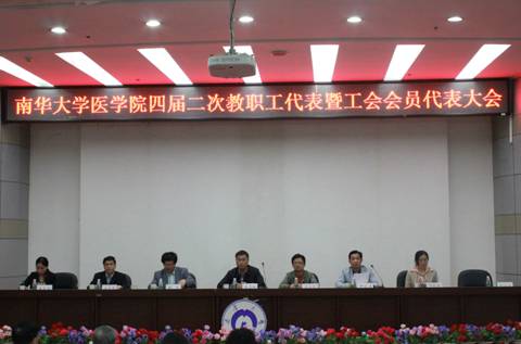 会议在庄严的国歌声中拉开序幕,南华大学工会常务副主席李双极和南华大学副校长姜志胜分别作了祝词并发表了重要讲话,对学院近年取得的成绩给予了充分肯定,对学院今后的发展提出了更高的目标要求。