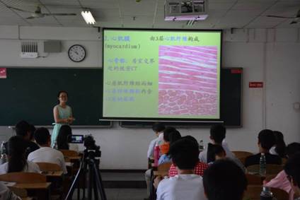 本次竞赛共有12名来自2015级卓医01班的同学参与,主讲的内容均来自于刚刚结束的《组织学》课程。参赛同学自行选择讲授内容,精心准备多媒体课件,在莫中成,谢远杰2位老师的指导下,经过反复修改和预讲,均以最佳的状态展现在讲台上。赛场上,制作精美的课件,参赛选手的激昂,台下观众的掌声,无一不体现出“小老师”们满满的精、气、神。流畅的讲解,显示同学们对自己所授知识点的娴熟和理解。他们在介绍各组织结构特点之后,都结合了相关的病理知识,向临床进行了拓展,容趣味性和知识性于一体,也从一定程度上反映了医学生在学基础课程时对结合临床知识的渴求。