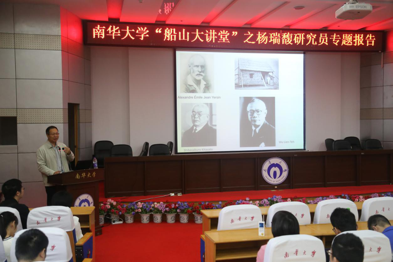 10月25日上午,应南华大学邀请,我国知名微生物学专家、军事医学科学院微生物流行病研究所病原微生物国家重点实验室主任、973项目首席科学家杨瑞馥研究员在图书馆学术报告厅做客“船山大讲堂”,做了题为“病原菌遗传与溯源”的讲座。