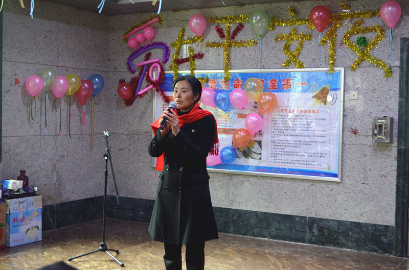 当天,肿瘤放疗科住院部大厅热闹非凡,四处布置着五彩气球、鲜艳彩带、圣诞树等,充满着浓厚的节日氛围。首先,何战胜和唐惠芳分别上台致辞,她们向肿瘤放疗科的医护人员、病人及其家属表达了平安夜真挚的问候与祝福。随后,医学院女生部带来的啦啦操表演使现场气氛迅速升温,台下掌声不断;医学院文艺部声乐组带来了合唱《梨花又开放》,合音婉转和谐,引人入胜;无声小品《小偷在哪儿》,活泼搞笑、寓意深长;文艺范儿吉他弹唱的《七月上》和悠扬动听的古筝曲《女儿情》,让观众们静静聆听,沉醉其中……期间,伴随着欢快的圣诞音乐,领导嘉宾们亲手为观众席上的病人和家属送上了包装精美的苹果。嘉宾们根据苹果上的编号抽取幸运观众,赠送了小礼品,并与病人和家属亲切合影。人与人之间的爱在这一刻得到了直接的诠释与传递,现场充满了温暖和感动。最后,联欢会在临床心灵关怀志愿者们的手语演绎《感恩的心》中落下帷幕。