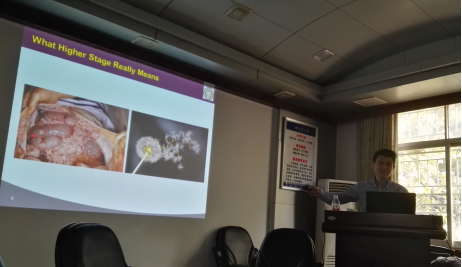 黄教授从低氧在肿瘤发生发展中的作用及分子机制、针对卵巢癌特有的种植性转移的抑制靶点、免疫治疗、循环肿瘤DNA与早期诊断等四方面阐述了卵巢癌的临床治疗候选新方案和早期诊断新标记物,为癌症防治和诊断方面的研究提供了新思路。报告会上,大家听得津津有味,并踊跃提问,黄教授进行了详细解答。会后,师生们都感到通过聆听黄教授的报告,受益匪浅,深受启发,对今后本学科科研工作具有重要的指导意义。