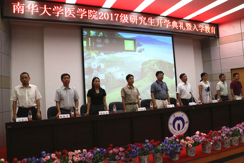 首先,由尹检龙致欢迎词,他介绍了医学院的教学和科研基本情况,祝愿新同学在未来的三年中能够学有所成。随后,2017级博士研究生代表朱肖发言,她分享了自己研究生期间的三点学习心得:第一,要早进实验室,熟悉实验室操作;第二,要多参加学术报告,培养科研思维;第三,研究生要培养学习的“主动性”与“独立性”。然后,2017级硕士研究生代表陈雨晴发言,她表示新生要怀揣着明确的目标,以认真、严谨的态度钻研学术,在医学院领导和老师的指导下,孜孜不倦,止于至善。紧接着陈熙讲话,他通过“志存高远”、“脚踏实地”、“标新立异”三个成语引申希望新生能珍惜宝贵的三年学习时间,树立远大目标、坚持以问题为导向,以创新为动力做好科研,早日取得成绩。开学典礼在南华大学慷慨激昂的校歌中落下了帷幕。随后参加会议的全体师生在图书馆前合影留念。