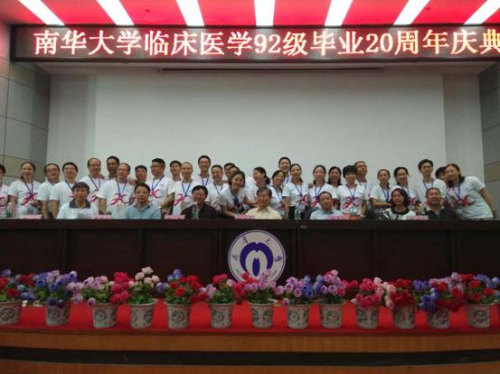 9月23日上午,在图书馆学术报告厅隆重举行毕业20周年庆典。同学代表徐海林发言,感谢母校的培养,并希望能为母校的发展尽一份心、出一份力!当年年级办彭巧云老师、班主任周怡老师讲话,回忆在母校五年92级的成长,勉励同学们砥砺前行。80高龄却依旧精神矍铄的杨永宗老师给庆典致辞,他深情地说到:“同学们,欢迎你们!20年了,终于又看到你们啦!”无比亲切而熟悉的声音让同学们感动不已。医学院院长陈熙老师,当年年级办彭巧云和彭仲生老师,临床学院贺秀英、蔡春雷、廖志庆、李仁桂老师,班主任唐圣松、邓文国、莫兰加、周怡、何玉媛、罗虹、张艳老师和同学们欢聚一堂,其中湖南医药学院校长唐圣松老师,班主任廖志庆、周怡、邓文国老师特地从外地赶回来参加这次庆典,让同学们欣喜雀跃。主持人唐惠芳代表全体同学向母校捐赠,将在第二教学综合楼前种植桂花林,让92级的心意飘香母校校园!