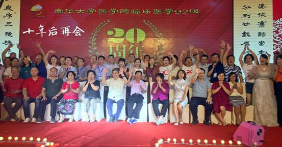 九月的金秋,丹桂飘香。蒸水河畔的南华大学校园内,迎来了一批特殊的客人,身着统一的文化衫,胸前印着大大的“20”和“1997-2017”的字样。他们满脸笑容,兴奋地指着一栋栋熟悉的建筑,不停地发出惊叹、不停地拍照。这是南华大学医学院临床医学本科92级的近300名同学,从全国四面八方、有的甚至从美国、加拿大回到母校,参加毕业20周年庆祝的盛会!