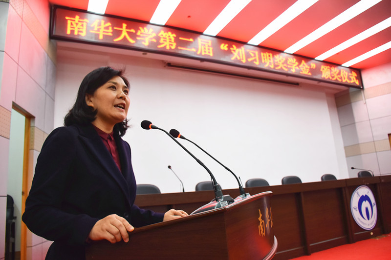 其后,宁联芳以“服务树品牌,管理出精品,科研促发展”为题,以生动热情地讲述,带领医学学子走进医学事业的神圣殿堂,精彩的演讲引得现场师生掌声不断。最后,尹检龙宣布南华大学第二届“刘习明奖学金”颁奖仪式圆满结束。