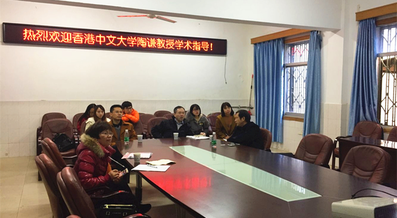陶谦教授老家是衡南县,对家乡衡阳有份特别的情感,多次提及要在南华大学扎扎实实做点实事,干点成绩,回报家乡人们。本次回到家乡是作为南华大学肿瘤细胞与分子病理学湖南省重点实验室申报的湖南省“百人计划”参加省科技厅组织的1月19现场答辩,并就作为南华大学高层次人才引进对象进行了交流。来校期间,陶谦教授还听取了南华大学医学院肿瘤研究所部分研究生导师及研究生的课题研究汇报,进行了具体的课题研究与规划指导,老师与研究生深受启发。
