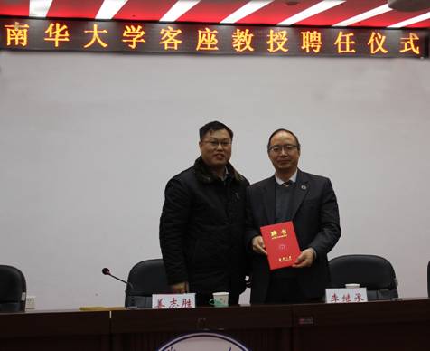 1月22日上午9点,浙江大学李继承教授受聘南华大学客座教授的聘任仪式在我校图书馆报告厅隆重举行。副校长姜志胜、医学院院长陈熙、党委书记尹检龙、副院长桂庆军、副院长唐志晗出席会议。授聘仪式由医学院党委书记尹检龙主持。医学院院长陈熙介绍了李继承教授的基本情况及其在教学科研工作所取得的成就,副校长姜志胜为李继承教授颁发了客座教授聘书。随后,新聘任的李继承客座教授发表了感言,他说:“南华大学是一所有着60年办学历史的综合性大学,培养了很多杰出的校友,很荣幸能成为南华大学的一员,本人会更多地关注和支持学校的发展,利用自己多年从事医学教育的经验和学术领域的社会资源,与医学院各学科开展深入的合作与交流,为南华大学医学类平台和科研团队的建设贡献自己的一份力量”。