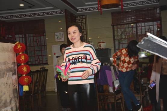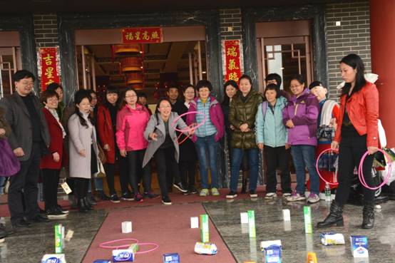 首先是跳绳和踢毽子比赛,以一分钟跳绳或踢毽子的次数决出比赛名次,老师们轮流上阵表演精彩技艺,引来一片掌声;不会的,也不妨上场一试,搏得大家一阵笑声。接着一项“套圈取奖”活动将大家的热情推向高潮,每人5个圈,可以一个接一个抛出,也可以5个圈一次性抛出,看谁套中的物品多。在牙膏、洗发水等多个奖品中,“神奇的抹布”竟最为抢手,深受老师们的青睐。