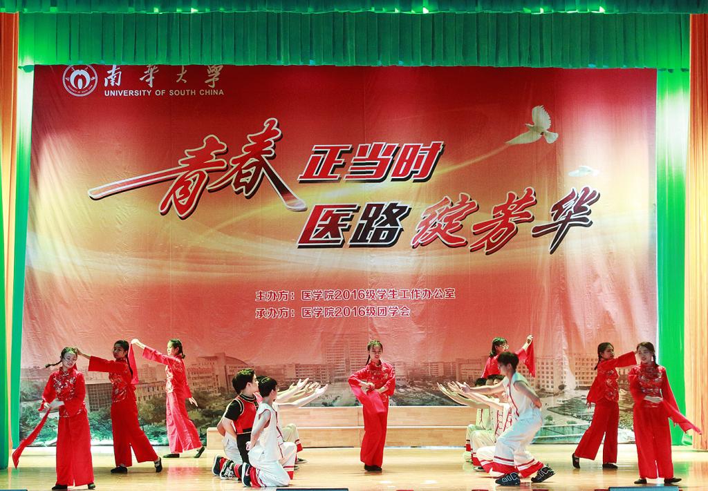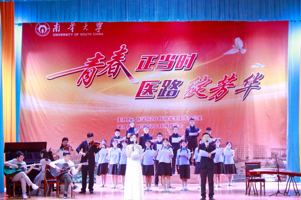 5月6日19:30,南华大学红湘校区学术报告厅,一场由医学院2016级学生工作办公室主办、医学院2016级团学会承办的医学院2016级“青春正当时 医路绽芳华”文艺晚会在此隆重举行。医学院院长陈熙、党委书记尹检龙、副院长桂庆军、党委副书记何战胜、党委副书记刘振中、副处级调研员刘小平,全体辅导员老师、2016级全体班主任老师出席了本次晚会。来自医学院2016级各班学子也齐聚一堂,共享这场视听盛宴。