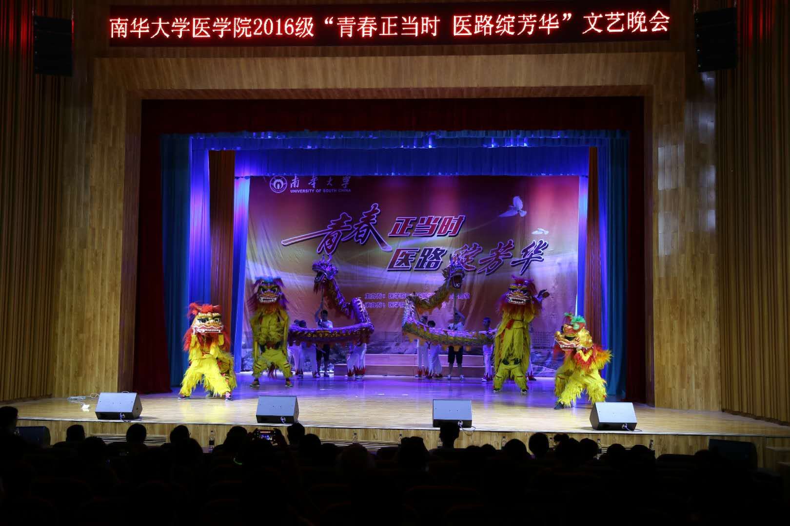 晚会在南华大学龙狮队带来的《龙狮舞青春》中拉开序幕,其青春洋溢,生动活泼的形式,迅速活跃了全场的气氛。晚会节目异彩纷呈,舞蹈、小品、朗诵、声乐等节目轮番上阵。其中,《带你去旅行》以街舞、歌唱、走秀等丰富多彩的表演形式,引领观众开启了一场欢快的旅程;诗朗诵《青春之诗》感情真挚,激励大家勇敢前行;舞蹈《守望》以优雅的舞姿、娴熟的舞步、动人的旋律展示了民国原创艺术的恢弘大气,更是将晚会推向高潮;小品《别离》和《人间自有真情在》站在了医生的角度,分别以亲情和医闹为主题,其情节环环相扣,出人意料的结局引发众人深思;街舞秀《dream dancer》动感十足,彰显了医学生的青春风采;舞台剧《红高粱》以悲壮激昂的曲调,动人心弦的剧情,激起了大家的爱国情怀;戏剧《不忘初心》别出心裁,以影子戏这一独特的表演形式表达了对学医的执着与自豪,引得全场观众拍手称绝。除此之外,穿插其中的有奖互动环节也获得了在座同学的热烈反响。最后,随着街舞串烧《together》结束,文艺晚会圆满落幕。