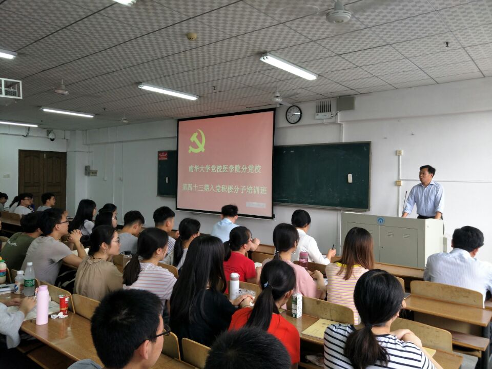 5月5日上午,南华大学党校医学院分校第四十二期、四十三期入党积极分子培训班开学典礼在南华大学红湘校区一教511、512顺利举行。来自南华大学医学院2015级、2016级、2017级、研究生的共391名共青团员开始接受党校的系统培训。医学院院长陈熙,党委书记尹检龙,党委副书记何战胜、刘振中,学生党支部书记佘雅、徐婵娟、李红颖出席了本次开学典礼,典礼由医学院院长陈熙主持。
