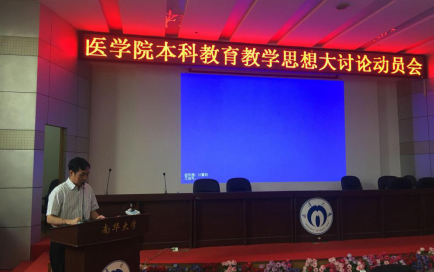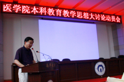 动员会由医学院党委书记尹检龙主持。首先,唐志晗副院长传达了“中共南华大学委员会、南华大学关于印发《南华大学本科教育教学思想大讲座活动工作方案》的通知”的文件精神和工作要求。随后,陈熙院长按照学校文件精神,就大讨论活动开展向全院师生提出4点要求:一是提高认识、形成共识;二是精心组织、注重效果;三是系统总结、凝练成果;四是注重评价、严格考核,确保学院的大讨论活动深入扎实开展,从而真正取得实效。