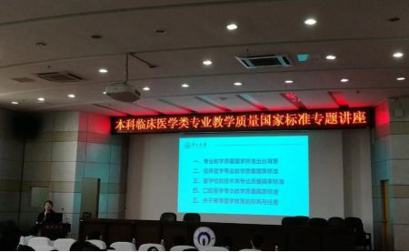 动员会后,陈熙院长主持举行了医学院本科教育教学思想大讨论活动的第一场专题讲座。此次讲座题目为“关于临床医学类专业教育办学质量标准的初步认识和体会”,由教育部高等院校审核评估工作专家、教育部临床医学专业认证工作专家、中山大学教务部教务管理处副处长王淑珍博士主讲。王处长介绍了专业教学质量国家标准出台背景,并对临床医学专业教学质量国家标准、医学检验技术类专业质量国家标准、口腔医学专业教学质量国家标准进行了详细解读。同时,王处长对我国目前高等医学教育的形势与任务也做了详细介绍。最后,部分老师还就相关教学问题与王处长进行了热烈交流。王处长的讲座提纲挈领、数据翔实、深入浅出,具有很强的指导性、针对性和启发性,听完受益匪浅,对学院下一步做好教育教学思想大讨论工作奠定了良好的基础。