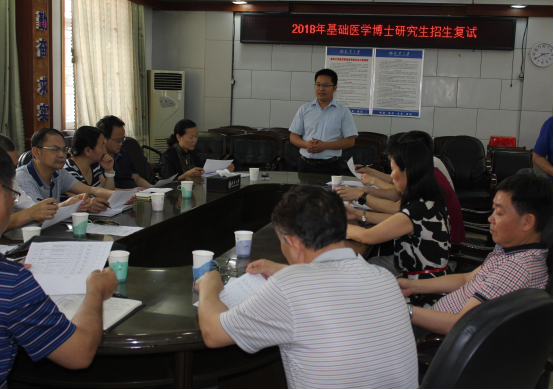 医学院2018年博士研究生招生复试工作于2018年5月28日下午圆满完成。为确保博士复试录取工作的公平公正,医学院特制定了2018年博士研究生复试录取工作方案,录取坚持科学选拔,探索并遵循高层次专业人才选拔规律,整个博士研究生招生复试录取工作做到科学公正、规范透明、平稳有序。根据南华大学2018年博士研究生入学考试考生复试控制分数线初试三科总分不低于170分、单科不低于40分的要求,22位考生符合条件参加了复试。复试主要考察了考生的思想政治素质和品德、专业素养、综合素质、科研及创新能力。总成绩以百分计,初试、复试成绩的权重各占50%。参加复试的考生按总成绩依次进行排名。今年计划录取名额16人(含硕博连读2人),其中计划录取全日制脱产攻读考生13人,达到录取总人数的80%。
