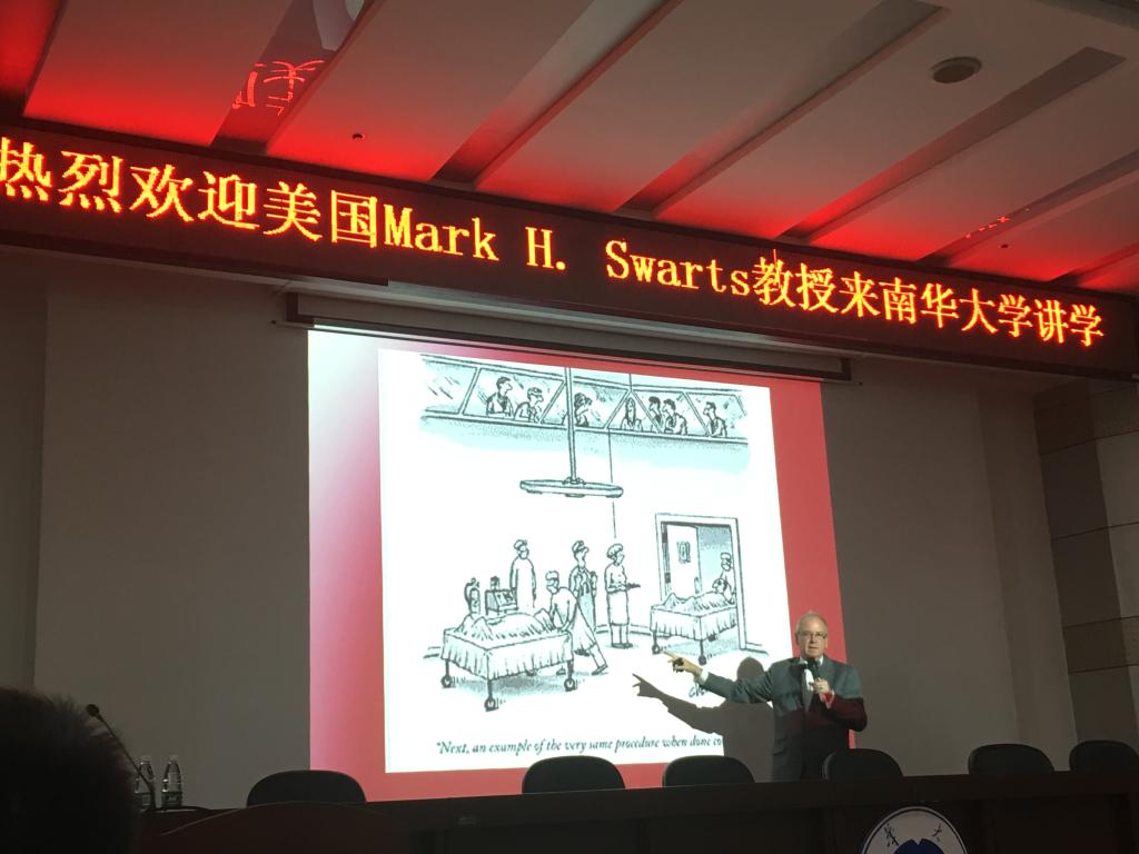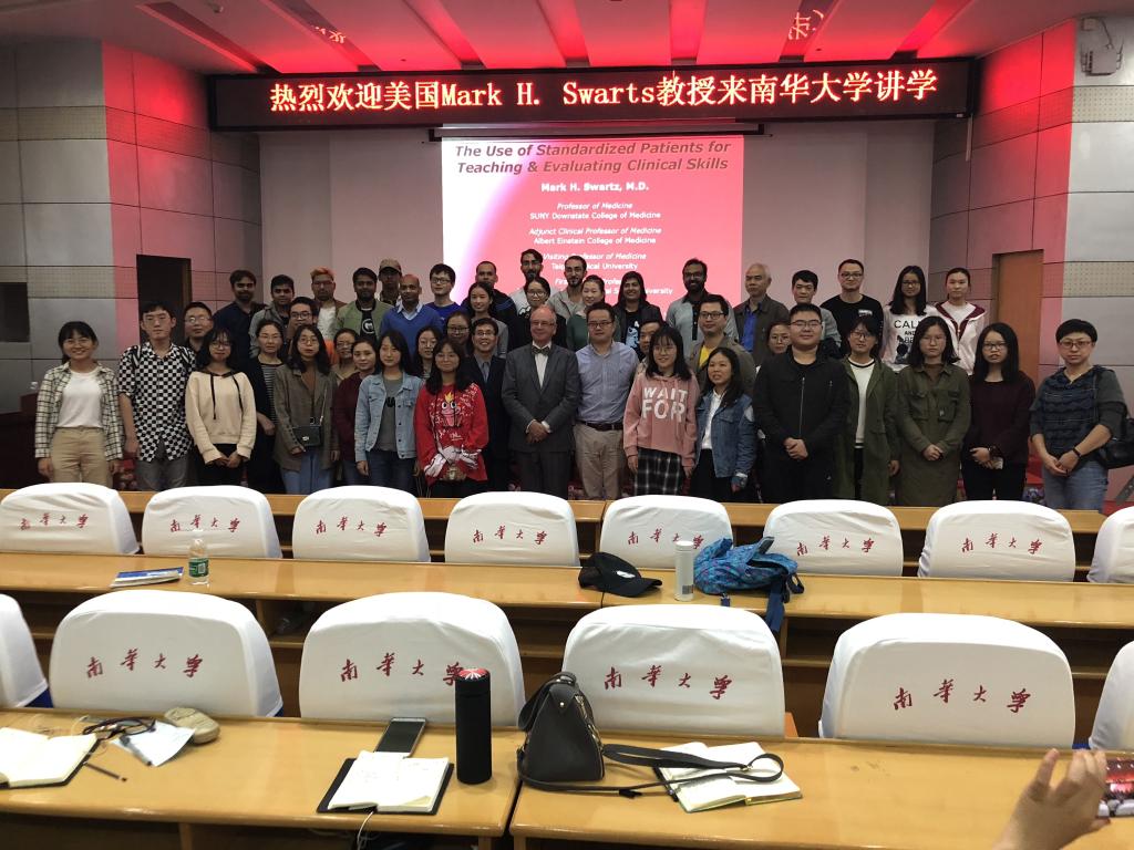 10月26日,国际知名的临床医学教育专家纽约州临床能力中心主席Mark H.Swartz教授来我校讲学。报告会在图书馆一楼学术报告厅举行,我校医学相关的本科生、研究生、留学生、临床技能教师及附属医院的临床医生参加了此次讲座,讲座由衡阳医学院副院长桂庆军教授主持。