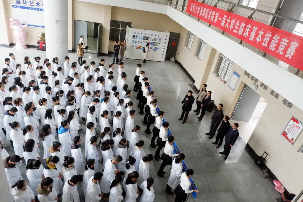 12月23日,由南华大学衡阳医学院举办的第一届临床基本技能竞赛在南华大学红湘校区新二教的临床技能教学中心成功举行。南华大学副校长兼衡阳医学院党委书记、院长姜志胜,常务副院长陈熙、副院长桂庆军、曾国,党委副书记何战胜等出席开幕式并观摩了比赛。