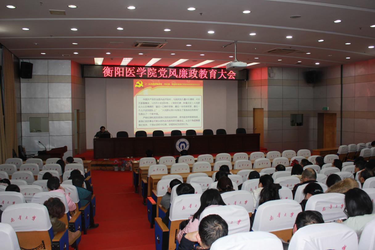 2019年1月15号晚上7:30,衡阳医学院全国教育大会精神宣讲和党风廉政教育大会在图书馆学术报告厅举行。学院党委常务副书记陈端阳作宣讲报告,学院全体教职工出席,会议由常务副院长陈熙主持。