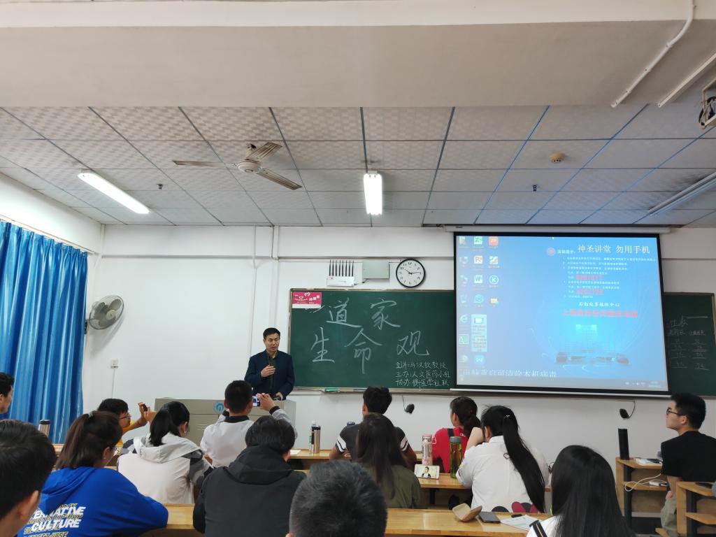 ——道家生命观于南华大学红湘校区第一教学楼515教室成功举行。本次主题讲座的主讲人由语言文学学院副院长马汉钦担任,药学院教授秦旭平以及衡阳医学院31名学生参加了此次讲座。