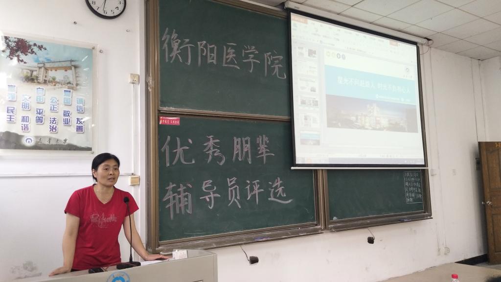 5月16号下午,衡阳医学院优秀朋辈心理辅导员竞选活动在第一教学楼110教室举行。院党委副书记何战胜,院心理专干、2016级辅导员徐婵娟以及2017级辅导员陈祉、2018级辅导员段元润担任评委,70余名2018级朋辈辅导员作为观众,2018级朋辈辅导员康寅博担任主持。