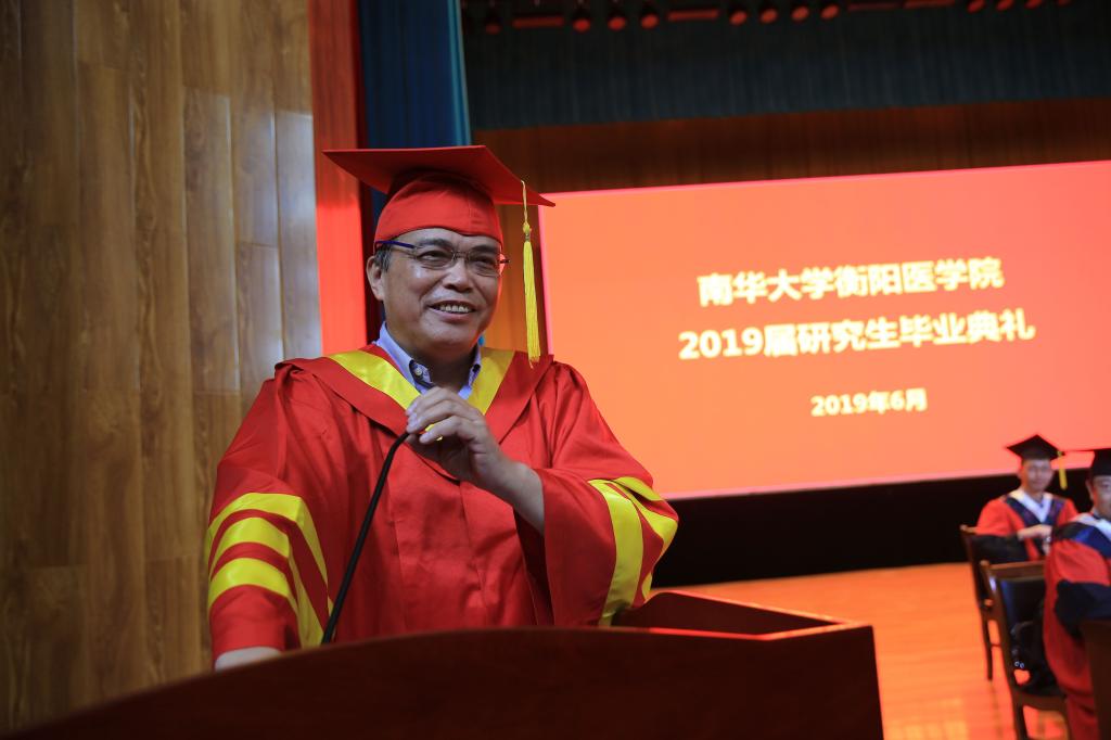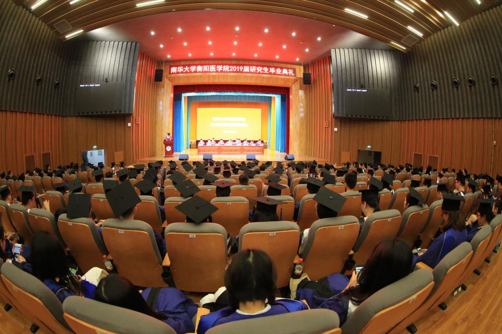 2019年6月13日上午10:30,南华大学衡阳医学院在南校区学术报告厅举行2019届研究生毕业典礼,校长张灼华、副校长、衡阳医学院院长姜志胜、研究生院、衡阳医学院、研究生协作培养医院院领导、导师代表、2019届基础医学、生物学专业毕业研究生、2019届各协作培养医院临床医学专业毕业研究生共同参与。毕业典礼由校党委副书记、衡阳医学院党委书记阳小华主持。