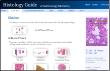 教研室通过多方搜索、反复查阅,发掘了优质的线上虚拟切片平台资源。采用的虚拟切片平台是:http://www.histologyguide.org/slidebox/slideb ox.html(图4左)。每次课将需要观察的切片编号及链接发送给学生,以便学生自主观察学习;或者通过腾讯课堂分享屏幕,带学生一起观察,同时辅以语音讲解,在线解答学生在观察切片过程中的各种问题。