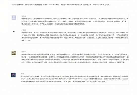 四项探索与尝试初见成效,参与线上教学的2018级临床医学专业的学生认为主要有两个方面感受比较深刻:一是疫情期间,老师们依旧能够将学科知识点十分详尽地教授给我们,保证了线上的学习效率,更难能可贵的是,每次我都在课后休息期间问了一些整理课件时发现的问题,老师们都没有丝毫推脱,利用他们的休息时间给我讲解;二是此次线上教学安排十分尊重学生的选择,每次网课开始前,老师们都会问我们对于上次的网课有什么要改进的地方,将建议收集后,老师们也会很快做出改进,保证了每一次网课的教学质量。