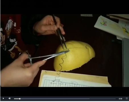 柚子皮替代缝合模块练习外科缝合操作(学生上传视频)