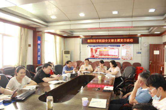 加入了新成员的衡阳医学院综合党支部 在6月5日下午3:00,组织全体党员同志在学院会议室,首先对新转入的党员同志向其他党员进行了介绍并表示欢迎,随后开展了以“注册‘衡阳群众’助力创文创卫”为主题的党日活动。支部全体党员参加,活动由院办综合支部书记洪丽主持。
