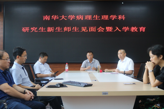 见面会在轻松愉快的气氛中进行,在刘录山教授介绍了与会导师后,研究生进行了自我介绍。第一个做自我介绍的硕士生就以自己的大名镇住了大家,并引起了哄堂大笑。“唐尚书”!这是病生学科迄今为止录取的最大职衔的学生!在新生逐一做完介绍后,刘录山教授简单介绍了病生学科情况。随后病生学科带头人姜志胜教授从6个方面寄语全体新生:1.立德树人,加强创新能力培养;2.尽快适应环境,转变身份;3.发奋图强,勤学好问;4.树立团队意识,强化团队精神;5.遵守组织纪律;6.遵守学术规范,恪守学术道德。见面会后,全体新生和导师进行了集体合影,留下他们在南华大学的第一个影像记忆。