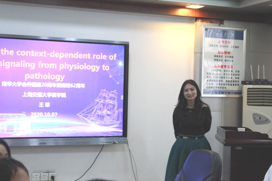 2020年10月7日上午,上海交通大学医学院研究员王琼教授应邀回母校衡阳医学院进行学术交流。学术交流由南华大学衡阳医学院副院长李忠玉教授主持,衡阳医学院100余名教师及研究生参加了本次活动。