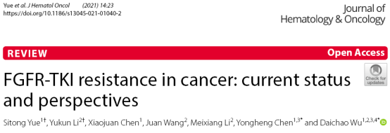 近日,南华大学衡阳医学院伍代朝博士与中南大学湘雅医院陈永恒教授团队合作,在国际权威期刊Journal of Hematology & Oncology上发表题为FGFR-TKI resistance in cancer: current status and perspectives的综述,阐述了成纤维细胞生长因子受体(FGFR)酪氨酸激酶抑制剂(TKI)在癌症治疗中的耐药机制,并提出克服耐药的潜在策略,具有指导抗癌药物研发和临床实践的重要价值。我院伍代朝博士和湘雅医院陈永恒教授为通讯作者,湘雅医院硕士研究生乐思彤和我院博士研究生李昱堃为并列第一作者。