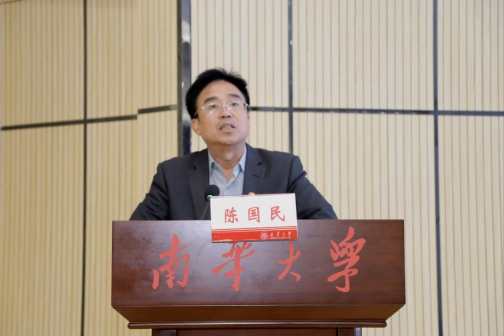 南华大学副校长陈国民致辞,他高度肯定了可孚医疗科技股份有限公司快速发展所取得的成绩,高度赞赏公司的社会责任感和对教育的支持和重视,并对其致以诚挚的欢迎与感谢。最后,他深情寄语获得“免费医学生计划基金”的学生,要把个人发展与国家、民族、社会的未来结合起来,立志成为苍生大医。