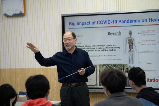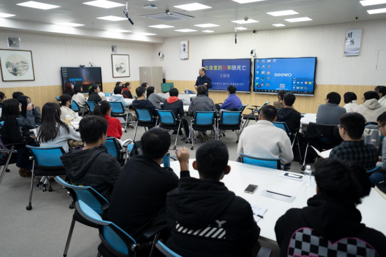 课堂上,王福俤教授讲述了他与他的团队关于抗击疫情的科研故事,为同学们介绍了“铁与铁死亡”的相关知识;探索生命科学的奥秘,找寻科学探索的方向,丰富同学们的课业知识。王福俤教授在课堂上对同学们倾情寄语,希望同学们能够从课堂中学习到相关科研知识,增加学习的动力,将来投身于科研事业,为国家科研事业贡献出自己的力量。