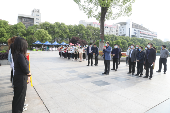 4月20日下午,衡阳医学院在南华广场举行支援长沙市天心区抗疫医护人员凯旋而归迎接仪式。校务委员会副主任、衡阳医学院院长王福俤出席仪式并讲话。衡阳医学院党委常务副书记曾国、医院管理办公室副主任李国华,附属南华医院党委书记周玉生、院长汤永红、副院长刘龙飞及附一、附二和附属南华医院相关科室负责人参加仪式。仪式由曾国主持。