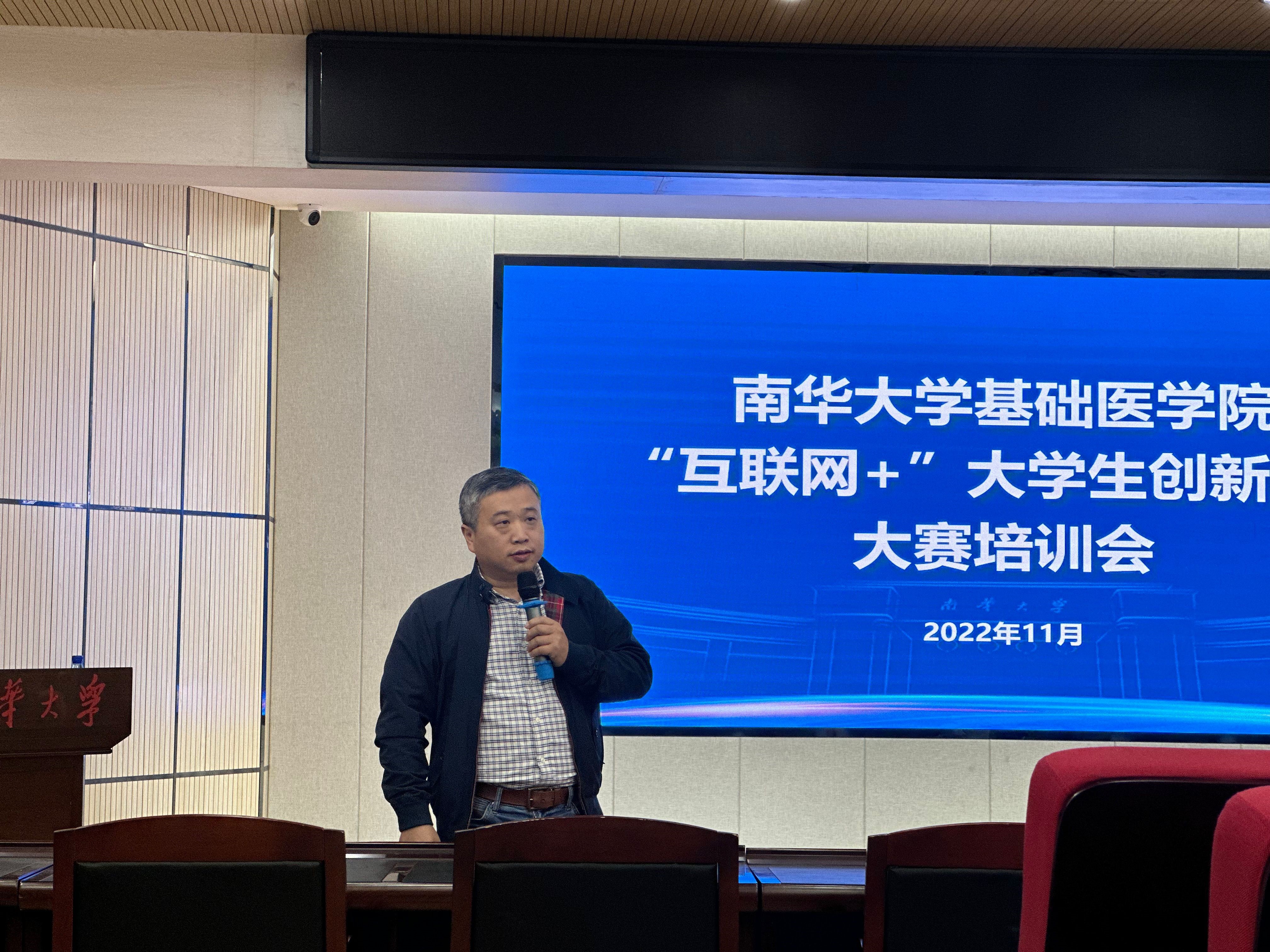 为充分发挥大学生学科竞赛在培养和提升大学生综合素质中的重要作用,11月15日晚,南华大学衡阳医学院基础医学院在红湘校区医研楼会议室召开了“互联网+”创新创业大赛培训会。本次会议邀请了曾多次获得“互联网+”大学生创新创业国家级及省级奖项的李熠副教授进行了讲座,相关获奖项目团队负责人刘睿夕同学分享了比赛心得体会和心路历程。会议由基础医学院副院长谢巍教授主持。基础医学院各班班长、团支书、科创联络人及部分老师参加此次会议。